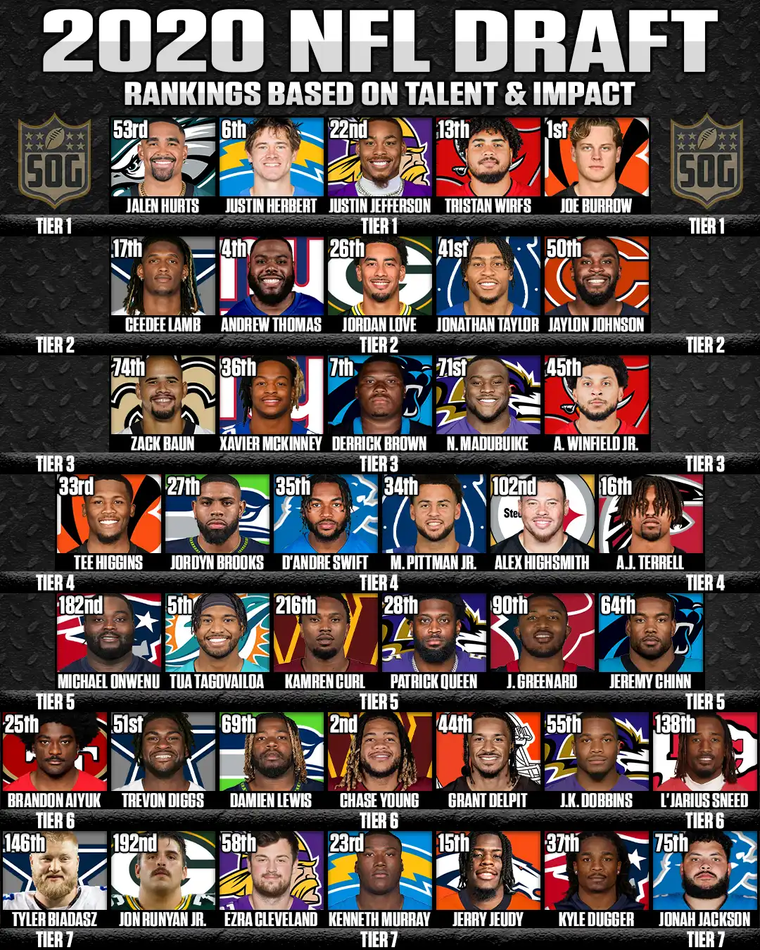 SOGSports ranks the best players from the 2020 NFL Draft class based on talent and long-term NFL impact.