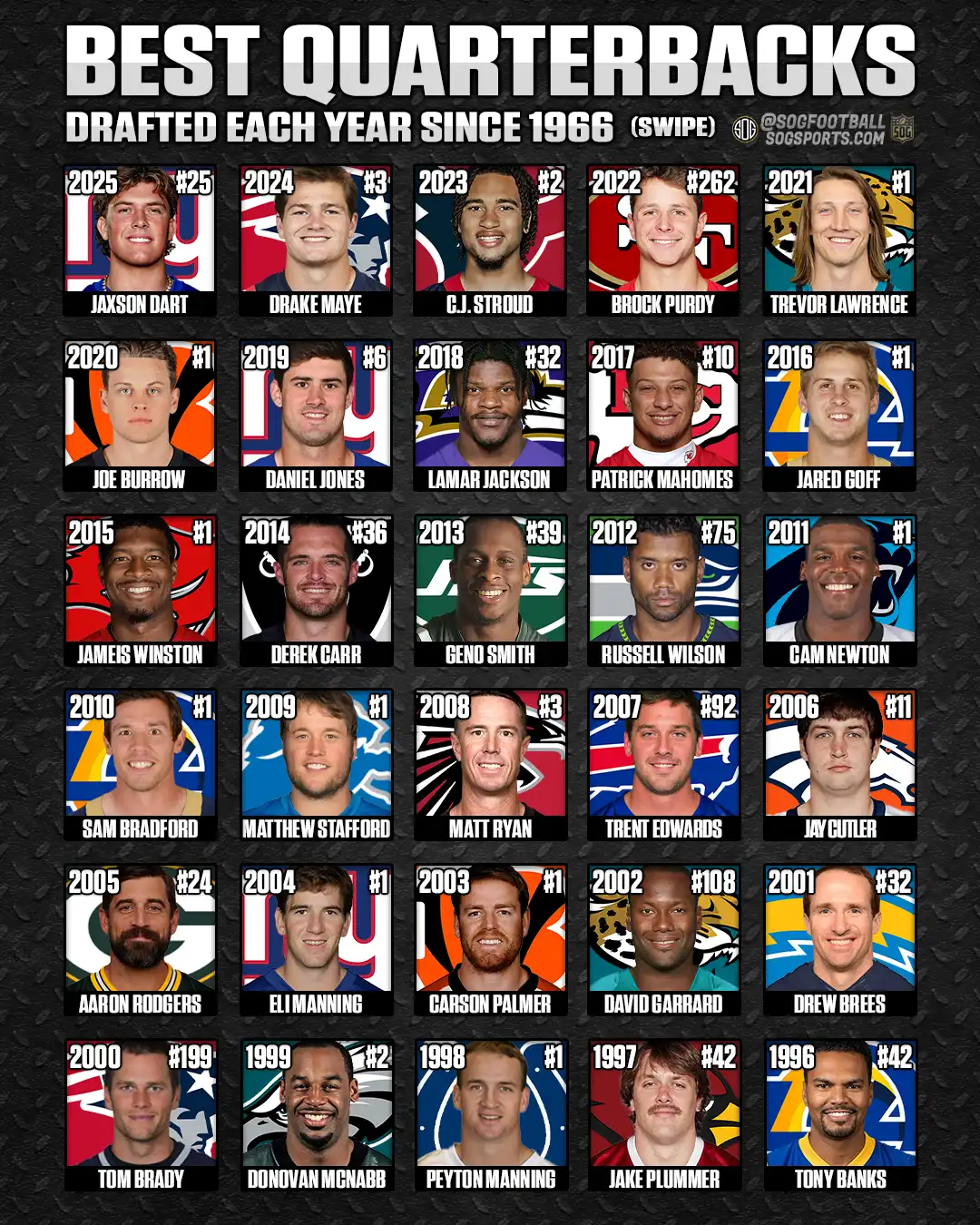 - Best Quarterbacks Drafted Each Year, 1996–2025