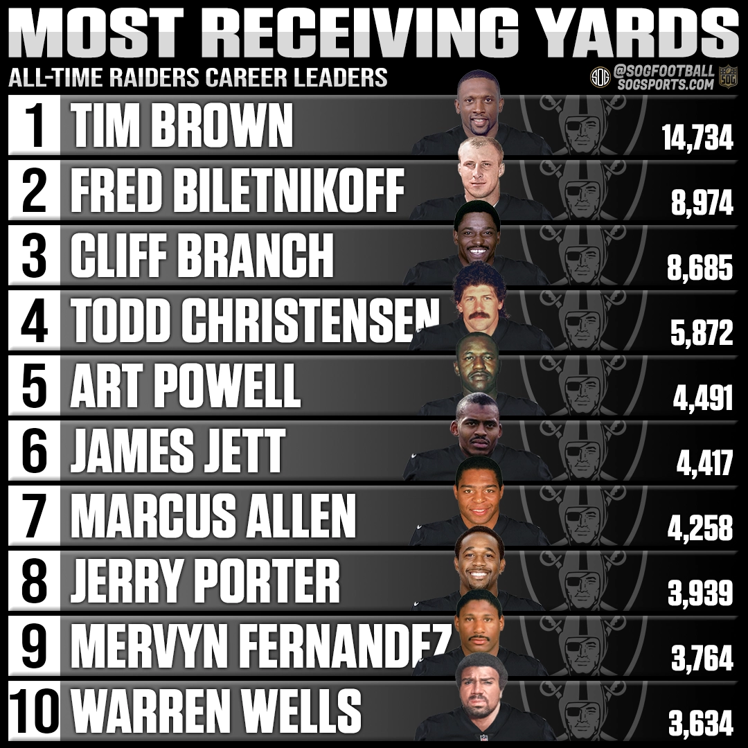 Ranking the 10 all-time career receiving yard leaders in Raiders history