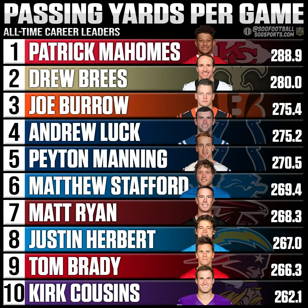 - Full List – All-Time Passing Yards Per Game Leaders